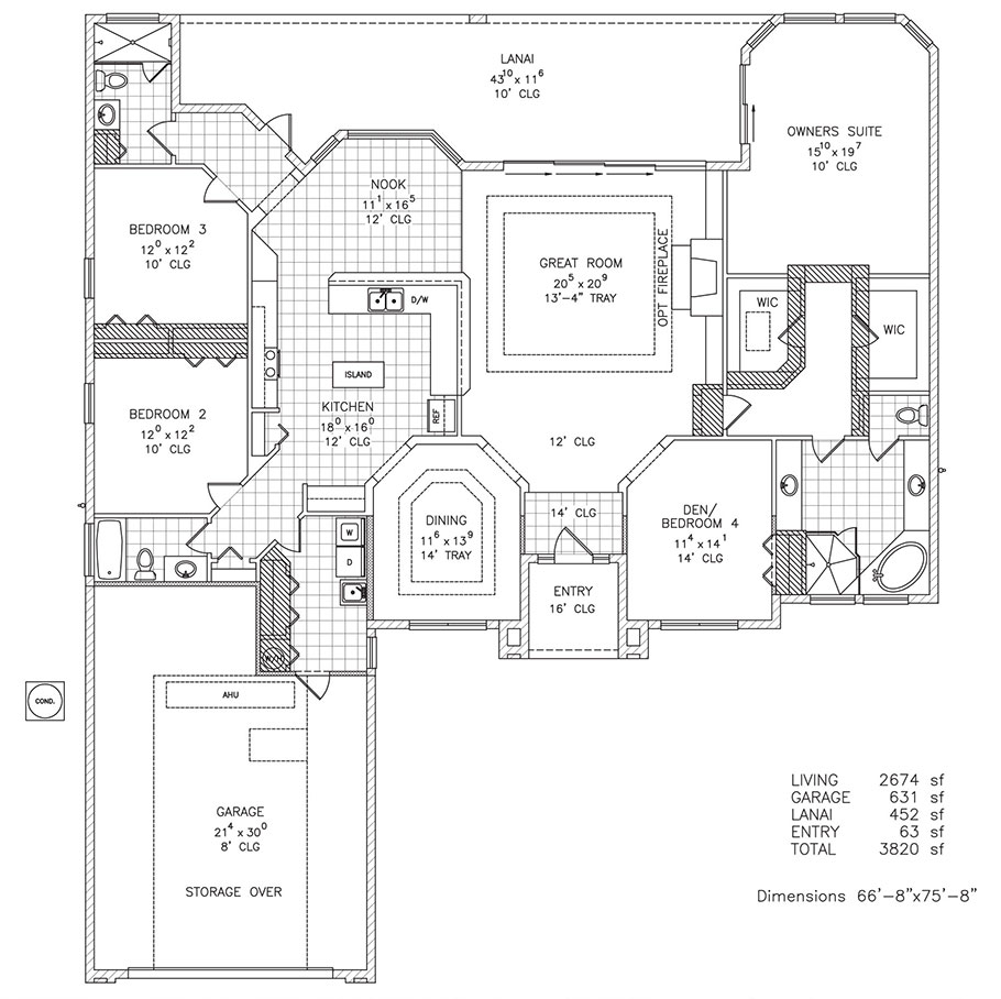 This perfectly envisioned model features ceilings as high as 14 feet, mitered glass window in the spacious kitchen nook, and a covered lanai which runs almost the entire width of the rear of the home. This lanai can of course be expanded to include a pool and the rear third bathroom can be altered to include a door to the pool area.